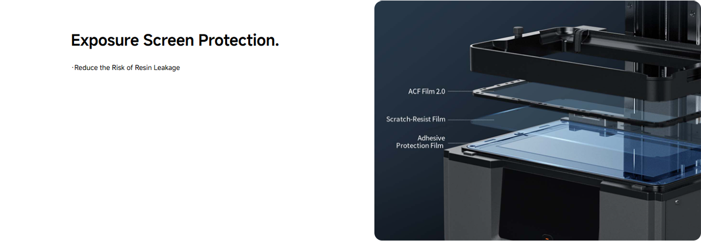 Med enkel 4-punkts kalibrering og nytt hengslet lokk er oppsett raskt og greit. Den store resinbeholderen på 1,3 liter og forbedret eksponeringsskjerm gir pålitelige langtidsutskrifter. Innebygde sikkerhetsfunksjoner som restdeteksjon, feilmeldinger og skjermbeskyttelse forlenger levetiden til printeren og sparer både tid og kostnader.