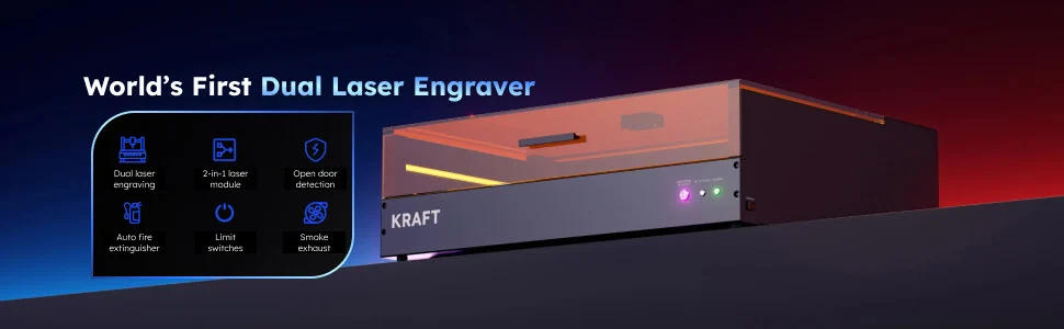 AtomStack Kraft er verdens første lasergraverer med doble lasere. Den er en avansert laserkutter utviklet for brukere som ønsker maksimal fleksibilitet i én og samme maskin. Med både en kraftig 20 W diode-laser og en presis 1,2 W IR-laser kan du jobbe med et langt bredere spekter materialer enn med tradisjonelle diodebaserte systemer.