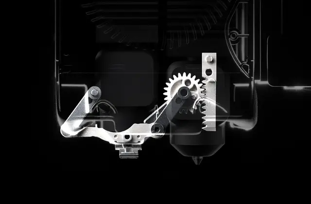 I stedet for å bruke en motor for dyse-bytte, benytter X2D en mekanisk gear- og ratchet-mekanisme. Det reduserer vekten på printhodet og mindre vibrasjon ved høy hastighet. Resultatet er bedre overflatekvalitet, høyere stabilitet og mer presise detaljer – også når printeren kjøres raskt.
