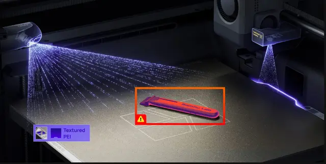 - AI Monitoring: Oppdager rester på platen, spaghetti, klumping og purge-feil i sanntid.