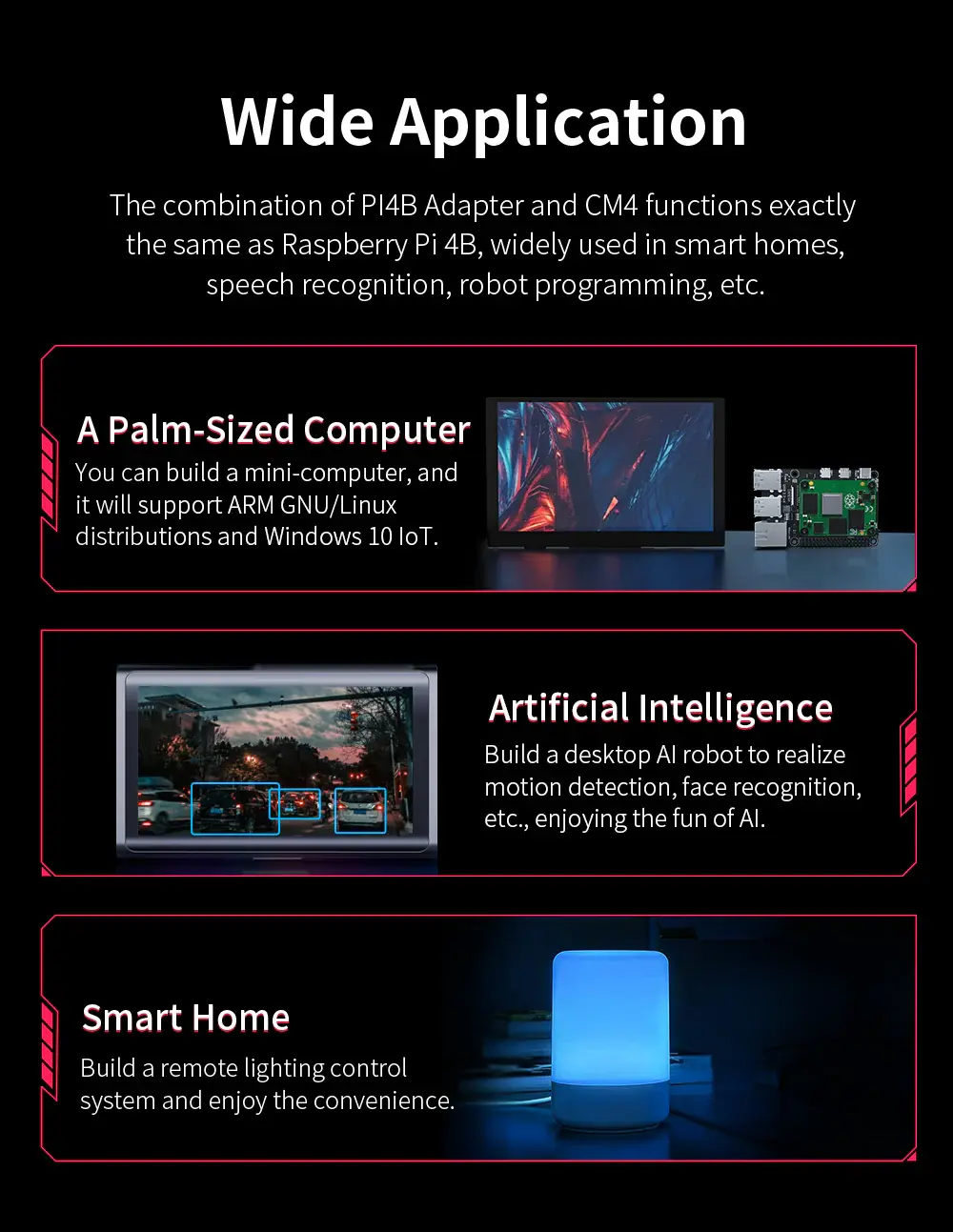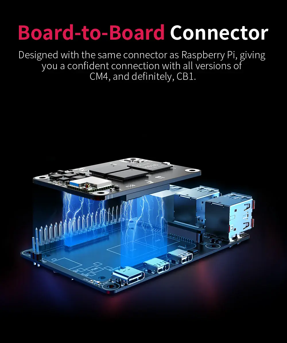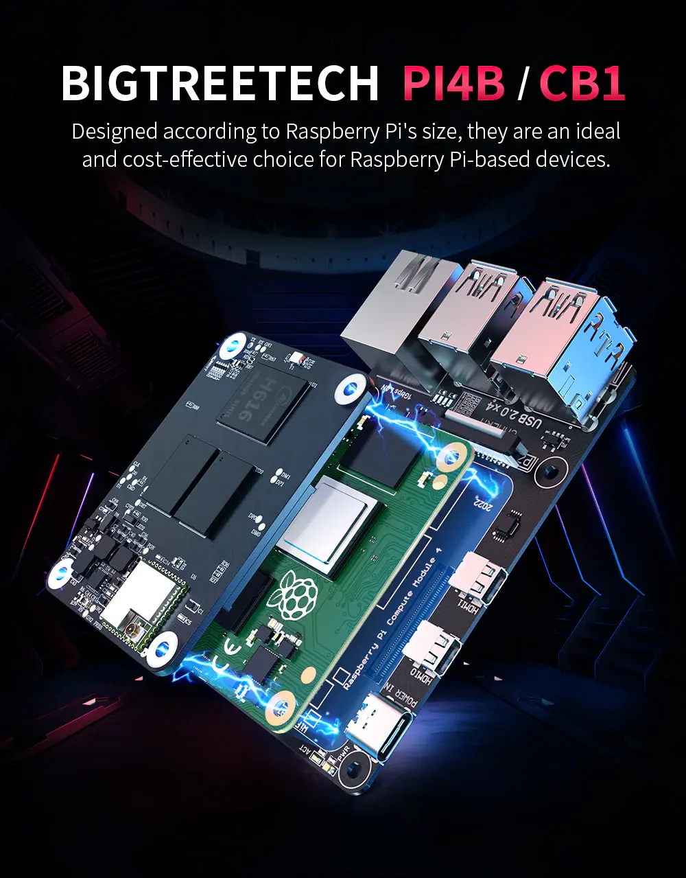 Genialt adapter for å få en fullverdig Raspberry pi ved bruk av Raspberry Computing Unit (CM4) eller Biqu CB1 som er Biqu sin tilsvarende computing unit