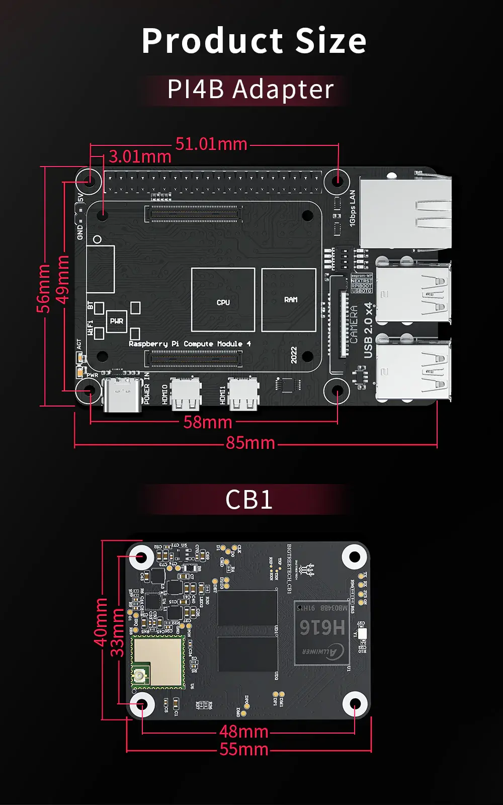 NB; dette er kun adapteret, man trenger i tillegg "computing unit" enten Biqu CB eller Raspberry PI CM4