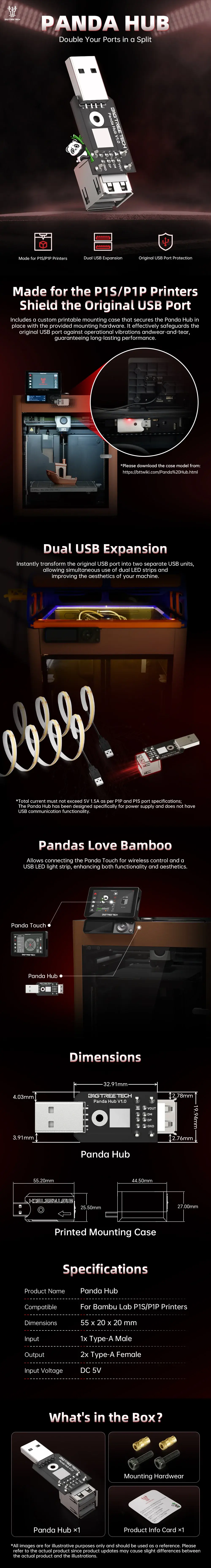 Forbedre Bambu Lab-skriveroppsettet med Biqu dobbel-USB-adapter; Panda Hub.
