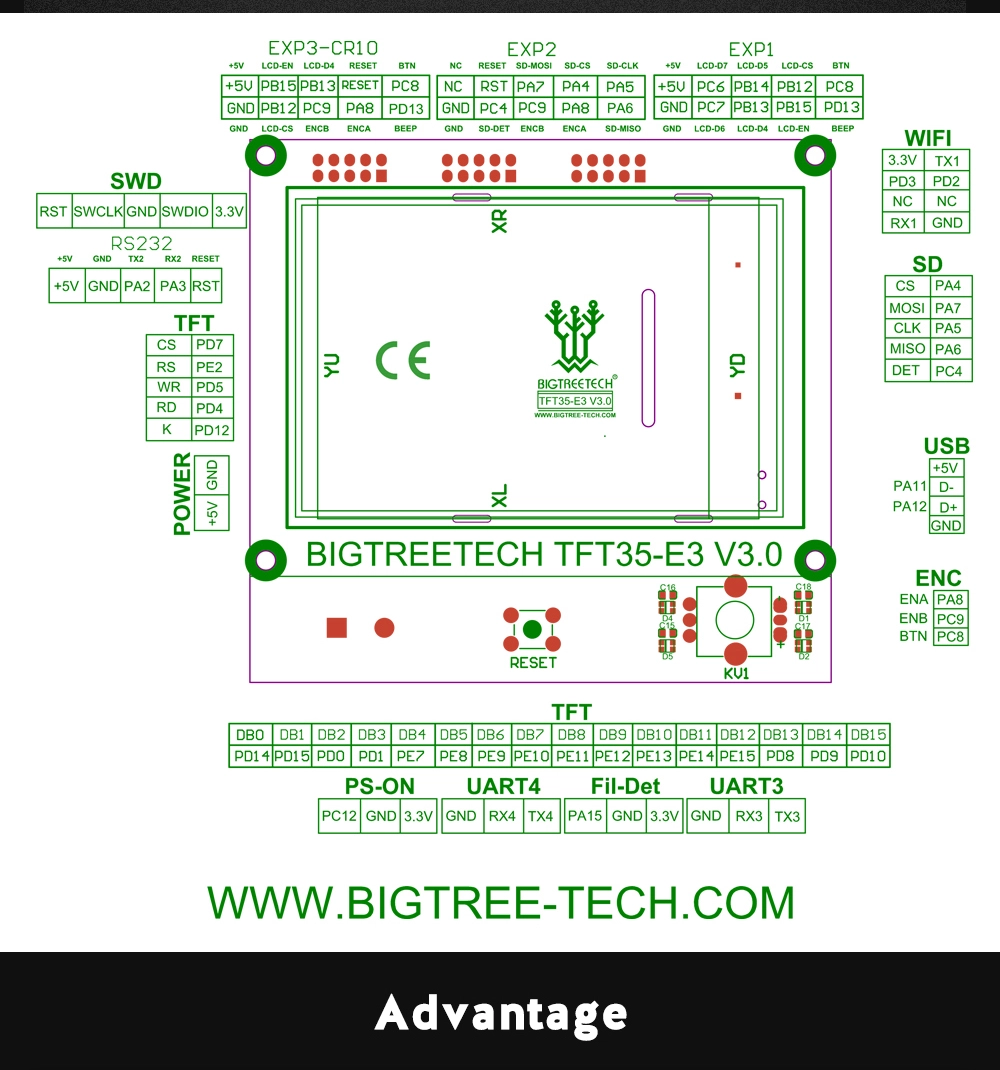 Installation size:Perfectly replace the original LCD screen of Ender3 printer, detail information please check TFT35-E3 V3.0 SIZE