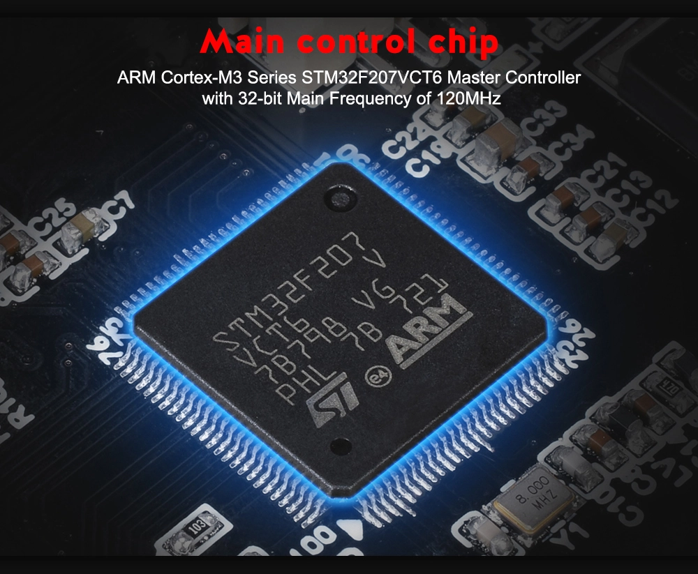 1)ARM Cortex-M3 series STM32F207VCT6 chip with 32-bit CPU 120MHz;