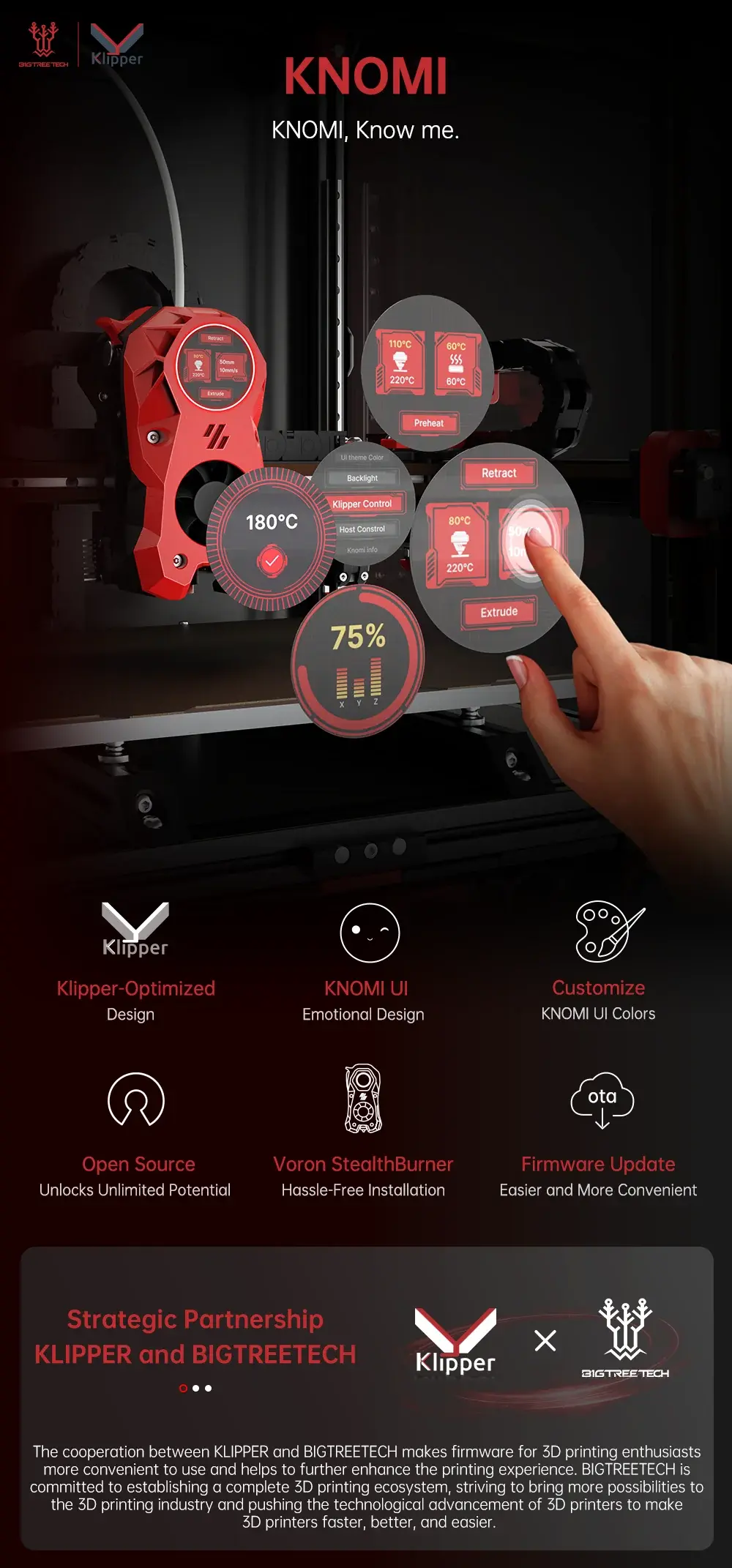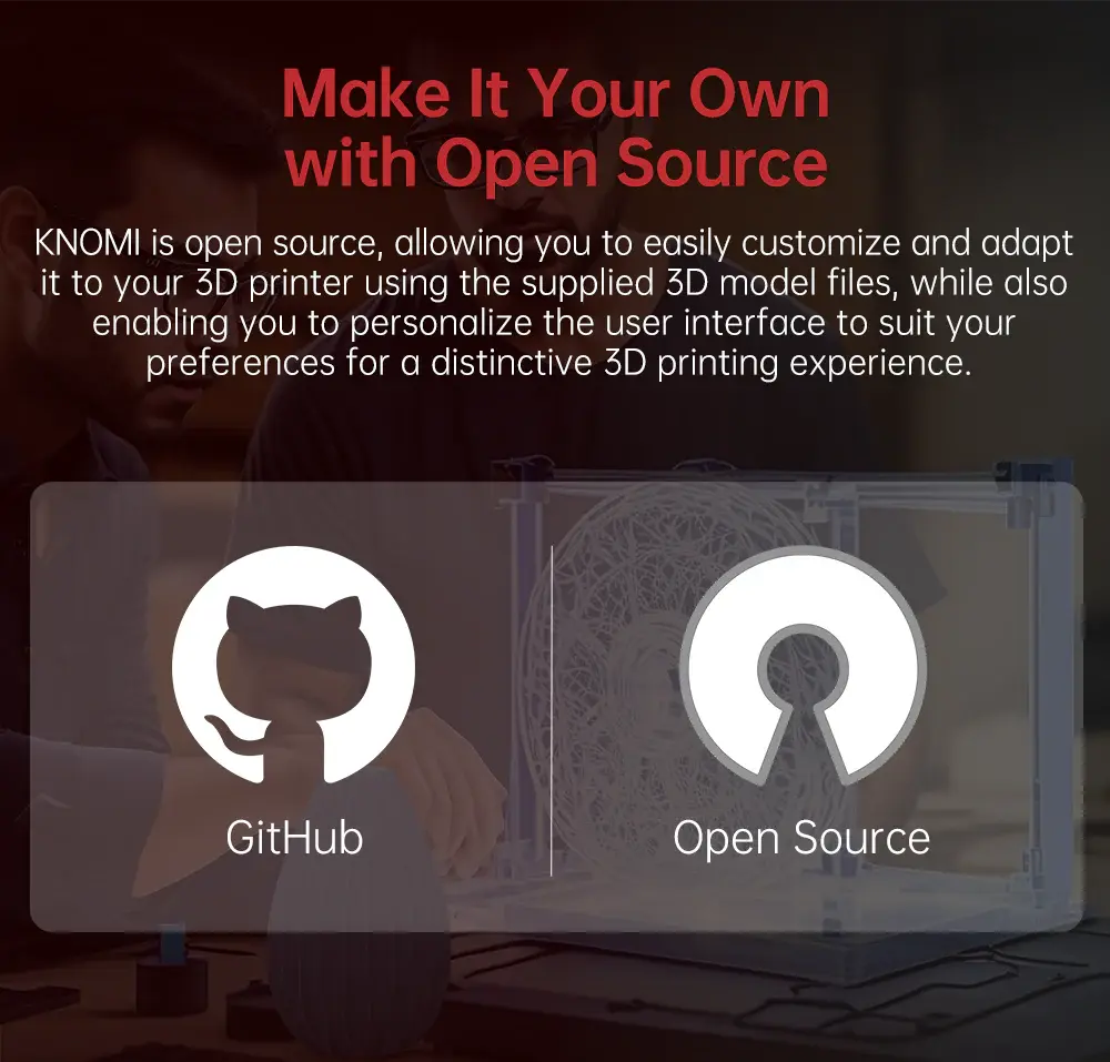KNOMI er et åpen kildekode-produkt som lar brukerne tilpasse brukergrensesnittet og designe monteringsbraketter som passer til deres spesifikke 3D-skriver.