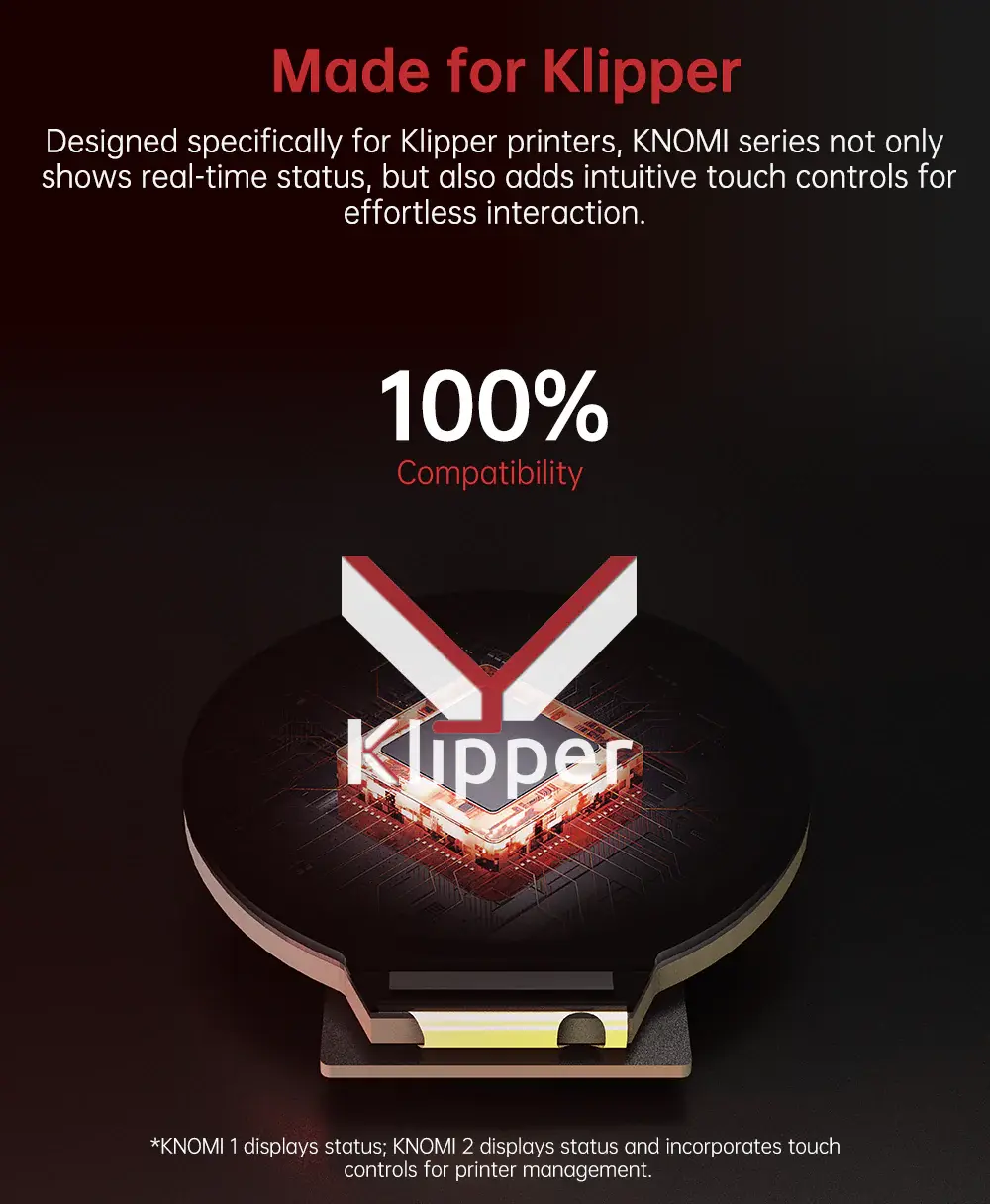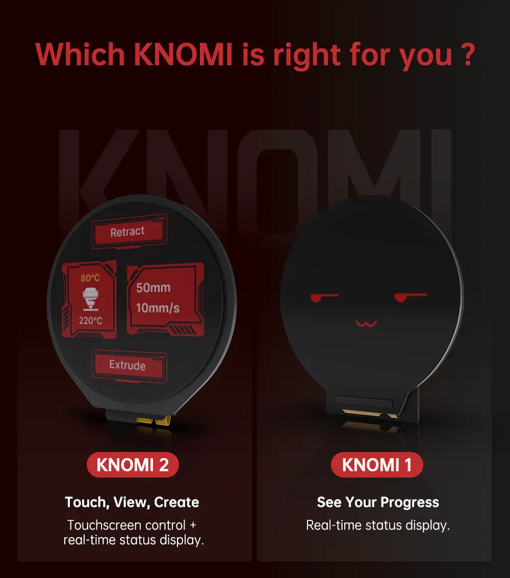 KNOMI er en mini rund skjerm designet spesielt for 3D-printere som kjører Klipper, og tilbyr brukere en unik og personlig måte å overvåke 3D-printerens drift på.