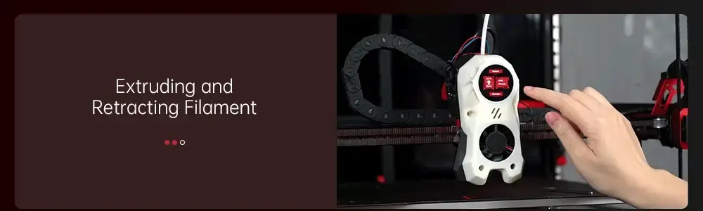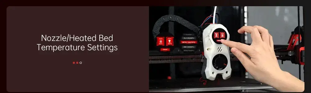Skjermen viser viktig informasjon gjennom KNOMI-grensesnittet, slik som temperatur på byggeplaten, temperatur på dysen, nivåstatus, fremgang i utskrift, osv.