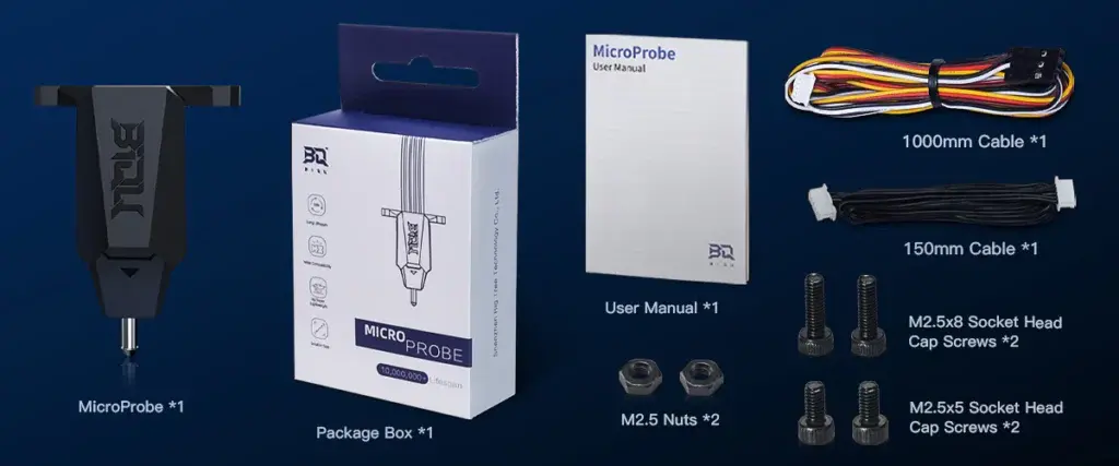 *Merk: I motsetning til hvordan BLTouch fungerer, vil mikrosonden utløses umiddelbart i helt uttrukket posisjon, uten utløseravstand. Når du installerer braketter, plasser bunnflaten av sonden ca. 1,5-2 mm under munnstykket i helt uttrukket stilling.