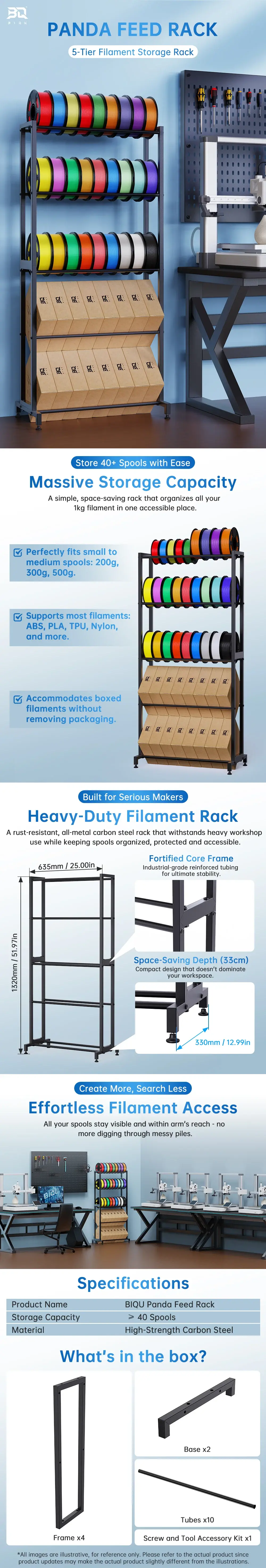 - Ryddig system: Holder filament organisert og lett tilgjengelig.
