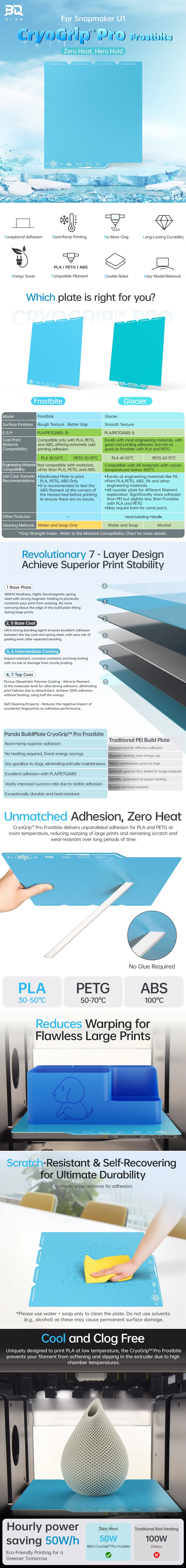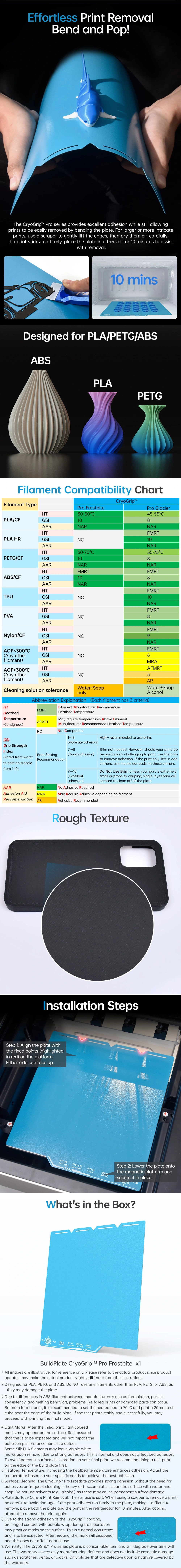BIQU CryoGrip Pro Frostbite Dobbeltsidig byggeplate med grovere CryoGrip-overflate for maksimal vedheft – selv ved svært lav platetemperatur. Utviklet for krevende første lag og større modeller som må sitte helt dønn stabilt.