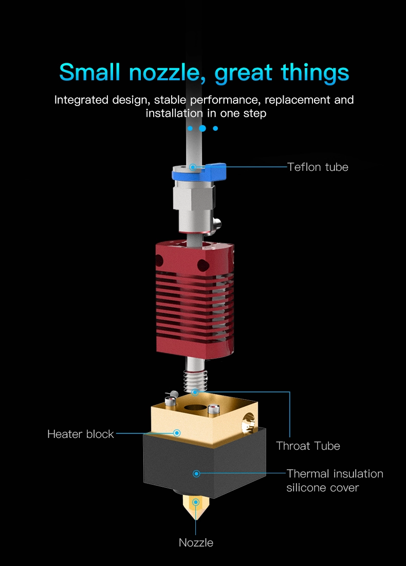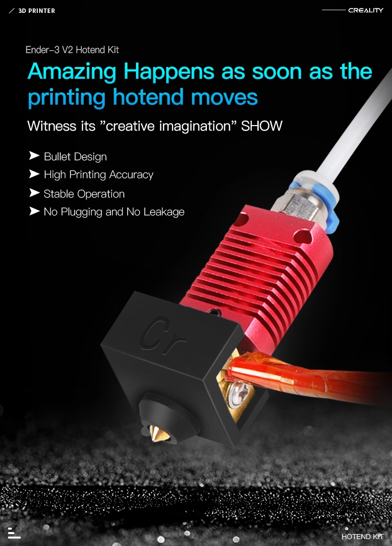 Dette hotend-kitet er laget som en original erstatningsdel til Creality Ender-3 V2. Når en hotend har gått mange timer kan det oppstå problemer som er tidkrevende å rette med småbytter –