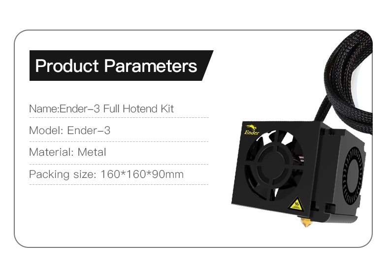 Komplett hotend-kit for Ender-3 som gjør det enkelt å bytte hele hotend-enheten når originalen er slitt, tett eller skadet.
