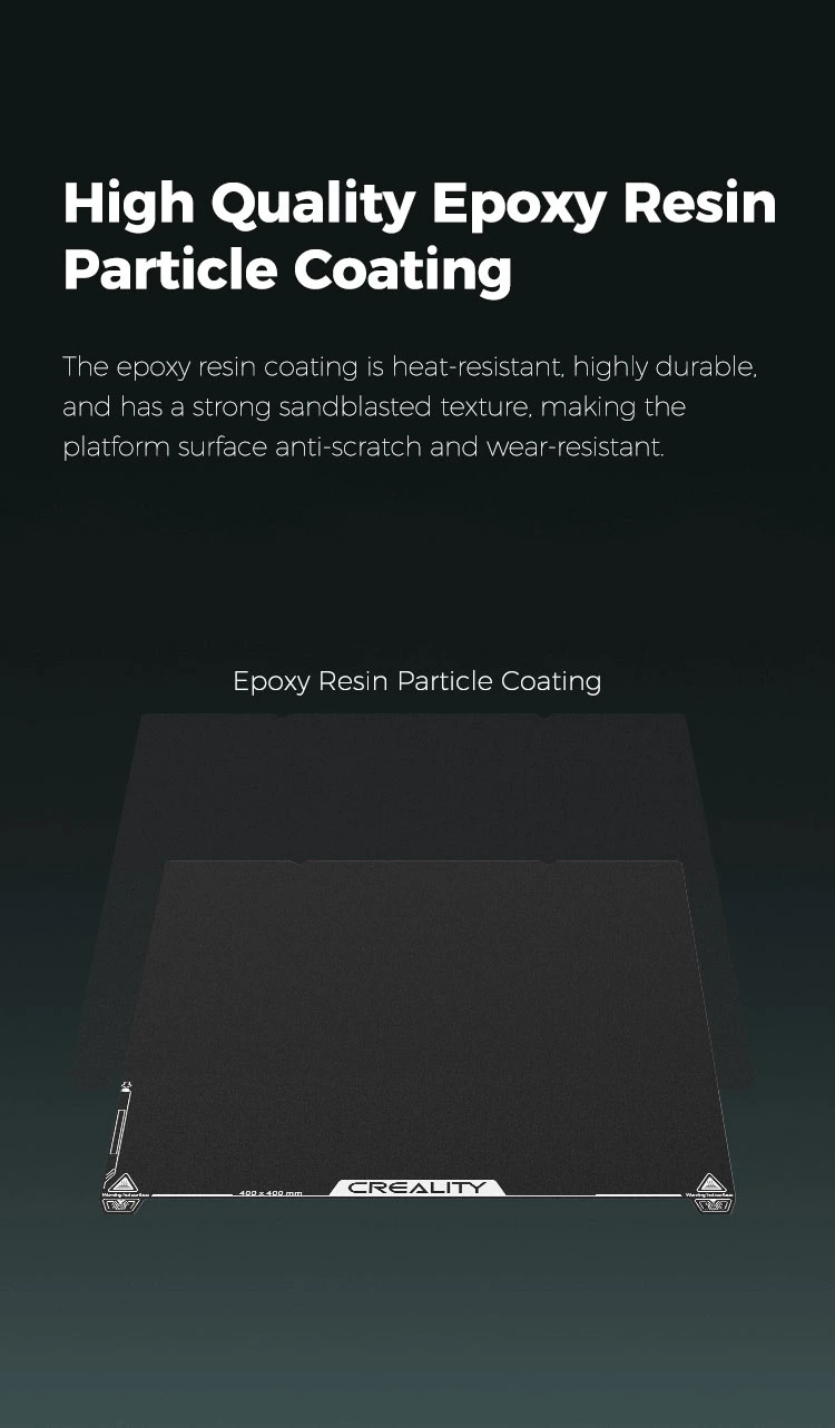 Ender-5 Max Epoxy Resin Byggeplate gir en jevn og stabil overflate for 3D-printing, med sterk vedheft og konsekvent utskriftskvalitet. Den slitesterke konstruksjonen i epoksyharpiks øker påliteligheten og gjør platen til et godt valg for en rekke skrivermodeller.