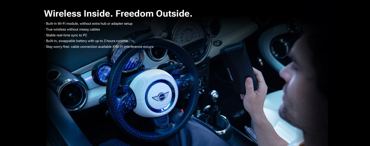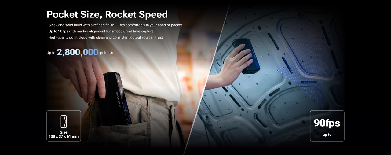 Det integrerte 5 MP RGB-kameraet fanger både farger og overflatetekstur sammen med geometrien, og skaper realistiske digitale tvillinger klare for design, visualisering eller 3D-printing. Rockit eksporterer i bransjestandardene STL, OBJ, PLY og 3MF, kompatibelt med de fleste CAD- og 3D-programmer.