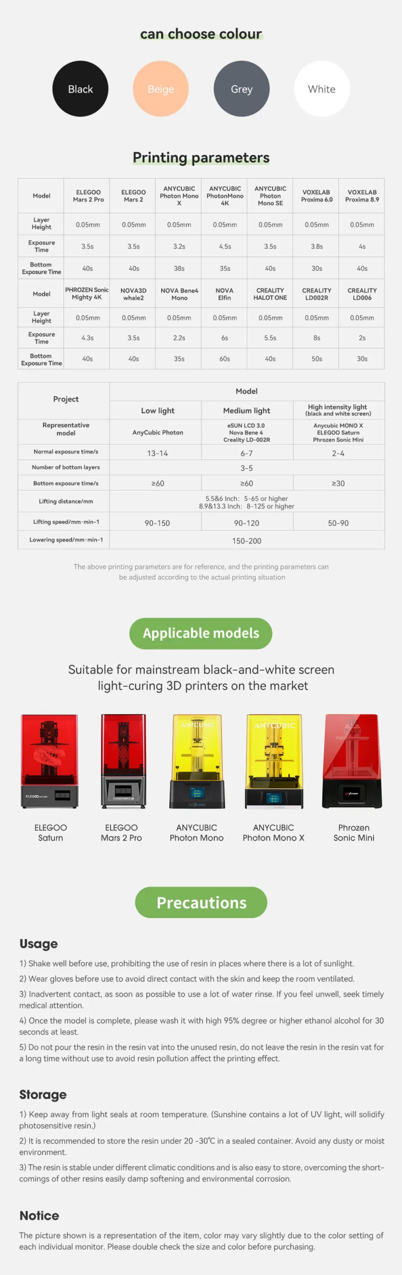 Anbefalt temperatur: 20-25?.Når modellen er ferdig, vask med ethanolbasert alkohol (IPA) for minst 30sekunder.Modellen skal etterherdes i sollys, eller ved bruk av uv kabinett