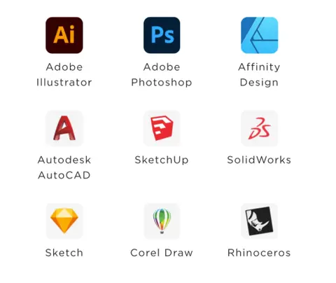 Inngravering og kutting kan gjøres i tre, akryl, skinn, bambus, og stoff, og i tillegg kan den inngravere i gummi, anodisk metall, glass, sement, stein og rustfritt stål (rustfritt stål krever tilleggsutstyr).