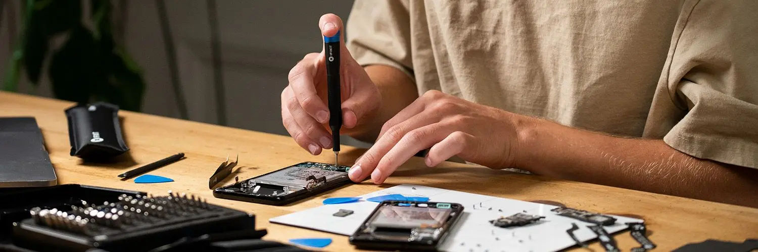 iFixit Mako Driver Kit – 64 Precision Bits Mako Driver Kit fra iFixit er et kompakt og komplett presisjonsskrutrekker-sett designet for reparasjon av moderne elektronikk. Med 64 nøye utvalgte bits, ergonomisk aluminiumsskrutrekker og fleksibel forlengelse gir settet deg verktøyene du trenger for alt fra smarttelefoner og laptops til spillkonsoller og små apparater.