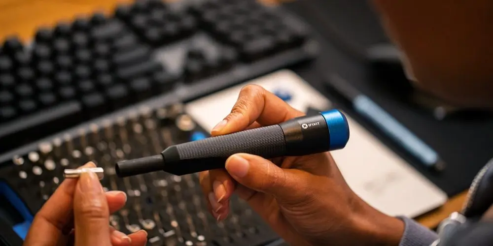 iFixit Manta Driver Kit – 112 Bit Driver Kit Manta Driver Kit fra iFixit er et av de mest omfattende skrutrekker-settene for reparasjon og teknisk arbeid. Med hele 112 bits og to ergonomiske skrutrekkere får du et verktøysett som dekker alt fra presisjonsarbeid i elektronikk til mer krevende skrujobber.