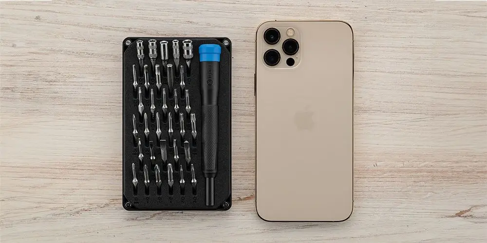 Den lette skrutrekkeren har riflet grep, magnetisk bit-holder og roterende topp som gir bedre kontroll under presisjonsarbeid. Håndtaket har også integrert SIM-verktøy og plass til oppbevaring av flere bits.