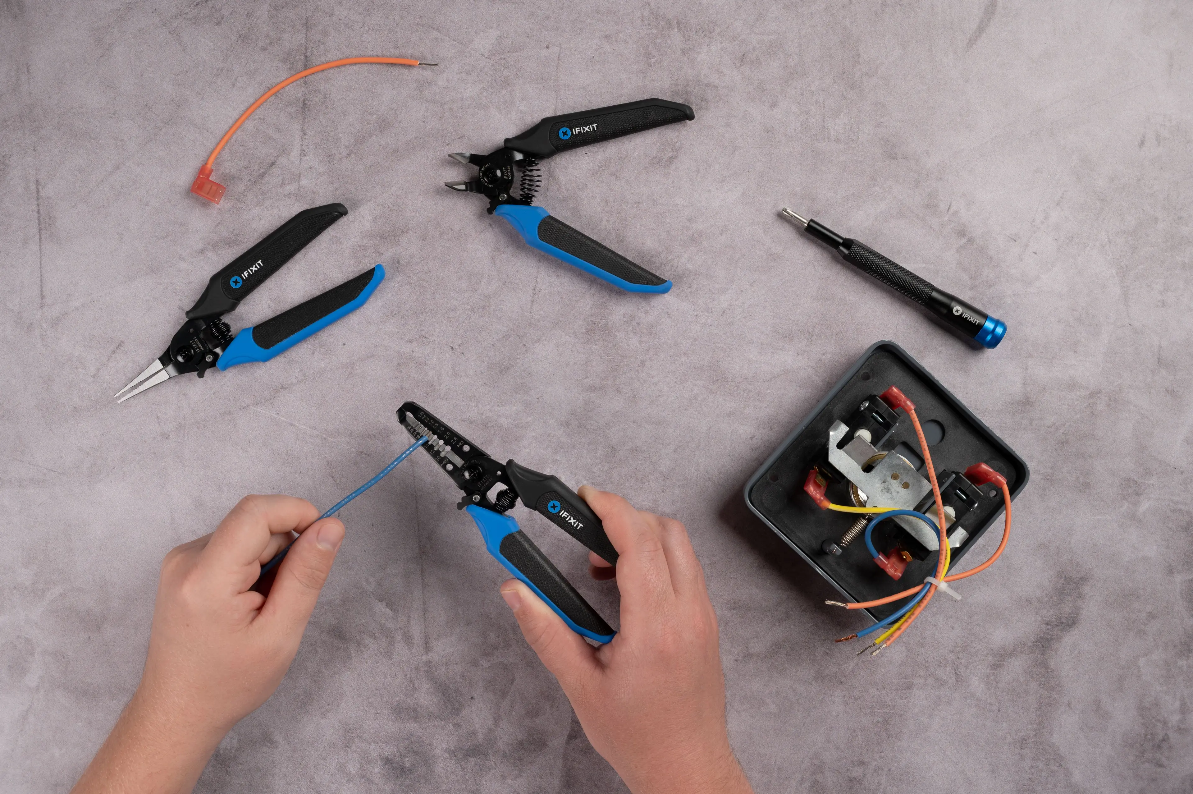 - Komplett tangsett: Inkluderer avmantlingstang, sidekutter og nåltang.