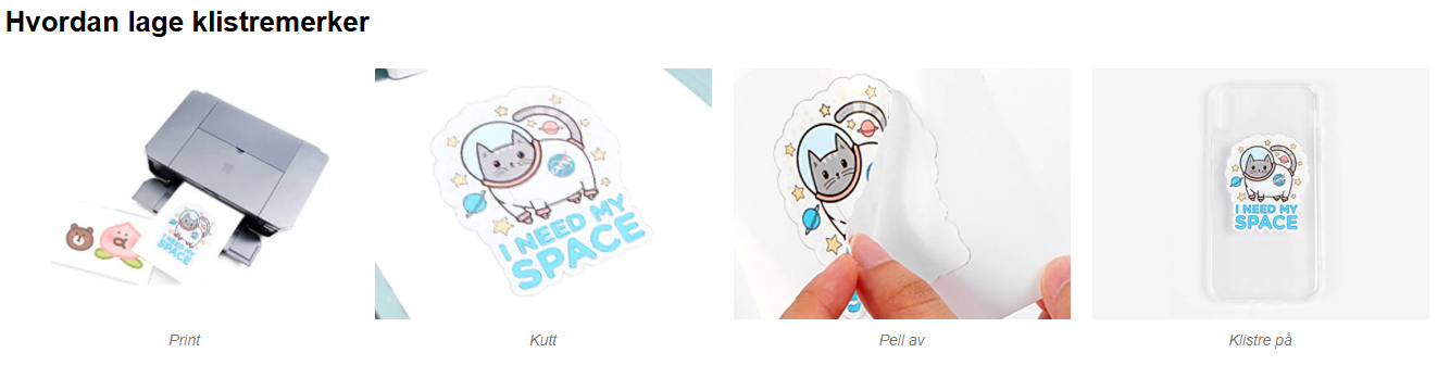 Det matte klistremerkepapiret er vannavstøtende. Du kan legge til en UV-bestandig sealer-spray eller laminat for å forbedre klistremerkenes levetid. La klistremerkene tørke i 5-10 minutter etter utskrift.